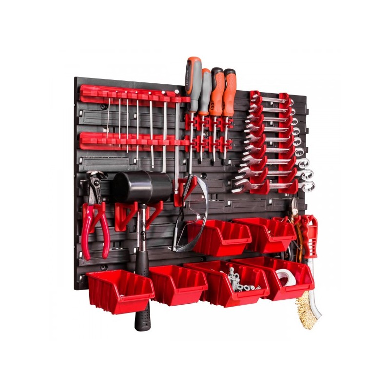 Deze kunststof gereedschapswand is een slimme keuze voor een compacte, georganiseerde werkplek. Licht, corrosiebestendig en perfect voor thuis of kleine ruimtes. Met gereedschaphouders en 6 bakjes berg je schroeven, bouten en basisgereedschap netjes op. Het geperforeerde ontwerp biedt flexibiliteit met verstelbare haken en bakjes. Duurzaam, betaalbaar en ideaal voor hobbyisten die efficiëntie zoeken. Eenvoudig te monteren en direct uit voorraad leverbaar. Houd je essentials binnen handbereik met deze praktische wand. Bestel nu voor snelle levering en geniet van een opgeruimde, functionele klusruimte!